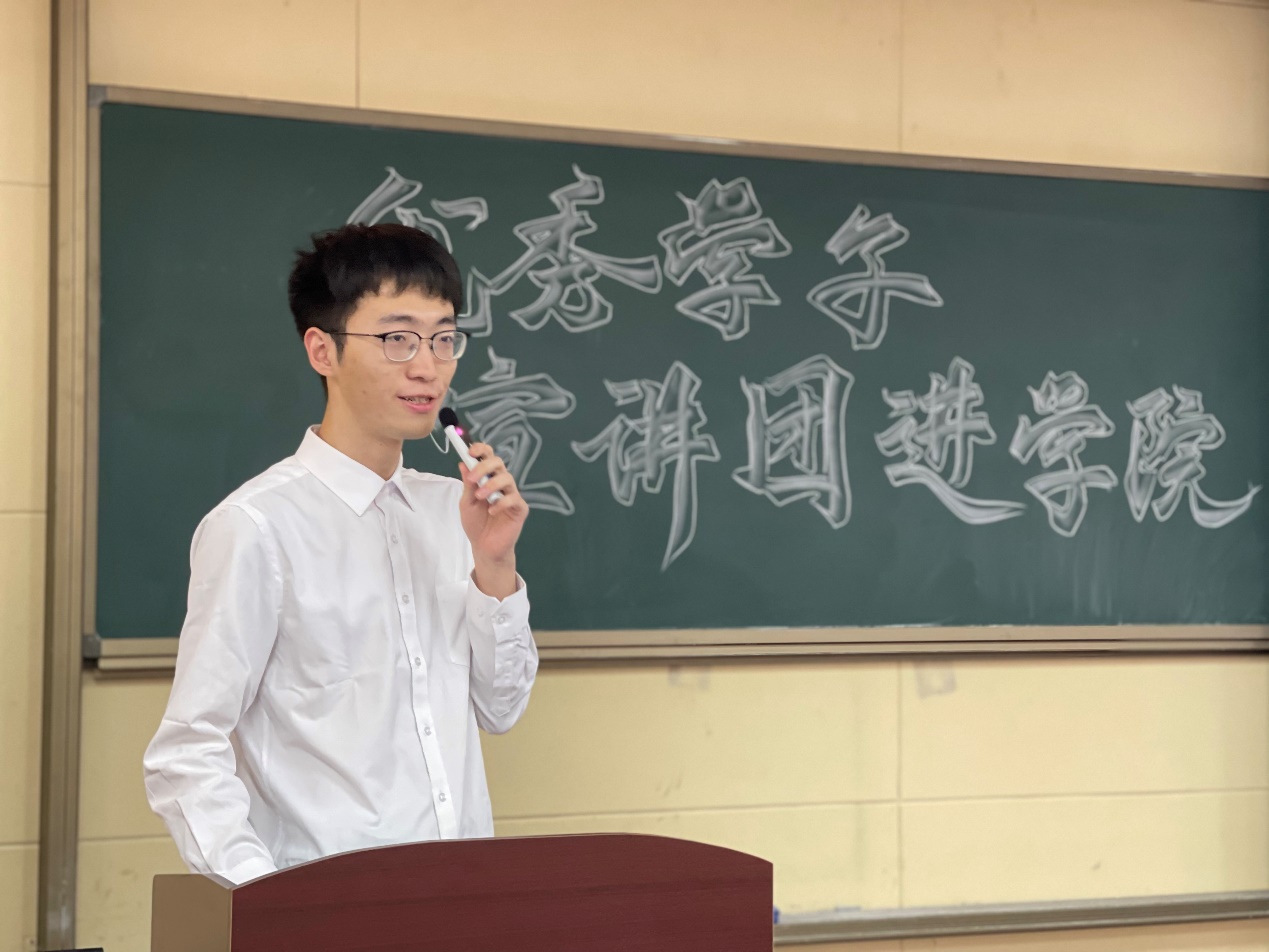 石黄闻清以“承使命勇创新,守初心砥砺行”为主题展开宣讲。她分享了自己在校学生会三年的蜕变史,从学生工作的“信仰”出发,讲述了它的萌发、开花和结果。她提到,“夜幕中大学生活动中心的灯火通明,学习到凌晨的忘我奋斗,都是个人成长的见证”。在校的四年间,她见证并参与了校学生会改革,她明白了人生万事须自为,跬步江山即寥廓。她希望同学们能够扎实学好专业知识,积极投身社会实践,脚踏实地,求真务实,将小我融入大我,成为实现中华民族伟大复兴中国梦的先锋唱将。