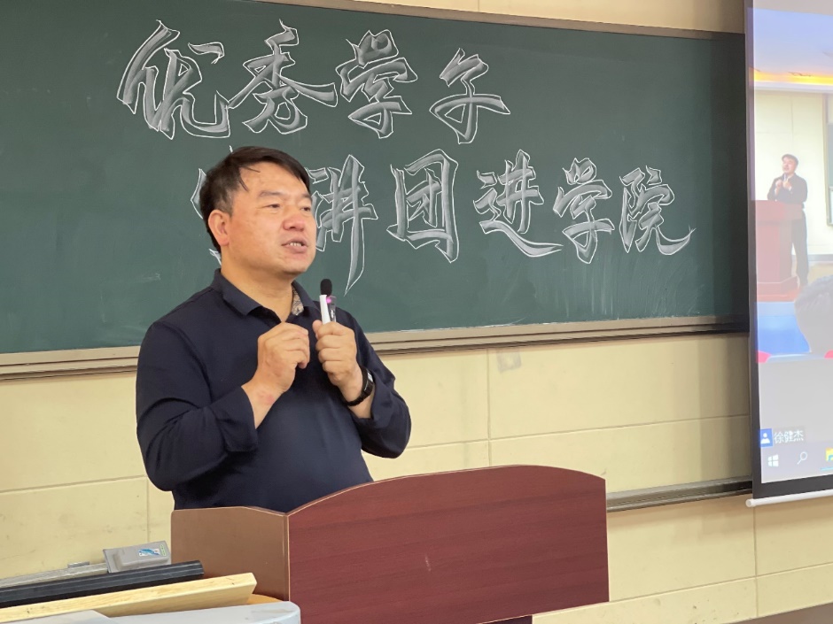 学院党委副书记于景宝做总结发言。于书记提到,两位学长的宝贵经验都是多年实践积累起来的,是同学们学习的榜样。他对同学们提出三点要求:将时代担当与个人命运相结合;把组织观念融入学习生活;把远大抱负落实到实际行动,让青春在实现中华民族伟大复兴的中国梦中绽放异彩。