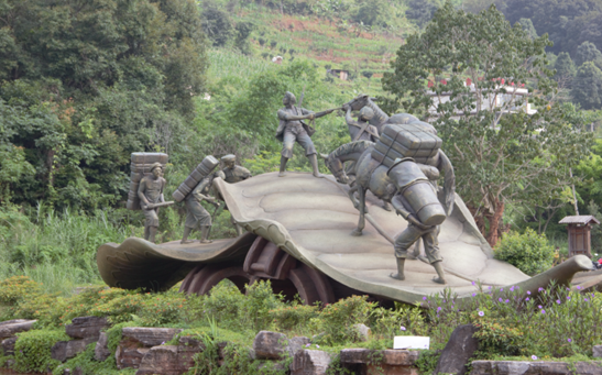 古城斑驳的城墙历历在目,一座硕大的马帮雕塑横跨城墙旁的草地。一旁讲解的向导让队员们了解到带动思茅繁荣起来的主要是驮运茶叶的马帮。然而,小城繁荣之路并非一帆风顺。“茗香只缘千年茶,古道直上万里路。”回望过往,茶商们翻过高山密林,行过羊肠小道,路有豺狼虎豹,商贸之路往往九死一生,然而千年以来,为了小城的发展与未来,为了谋求生存之道,无数的劳动者与商人坚持了下来。