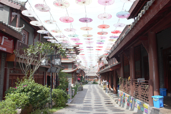 为了更进一步地了解故乡茶贸的完整生产交易链条,队员们携手走进茶马古城,从大街小巷,店商旅客中探寻着它千年的历史经历,感受着它独一无二的文化底蕴。古色古香的茶楼商铺间连接着流光溢彩的小彩伞,光芒四射中似乎讲述着茶马古城千年以来茶贸的繁荣昌盛。
