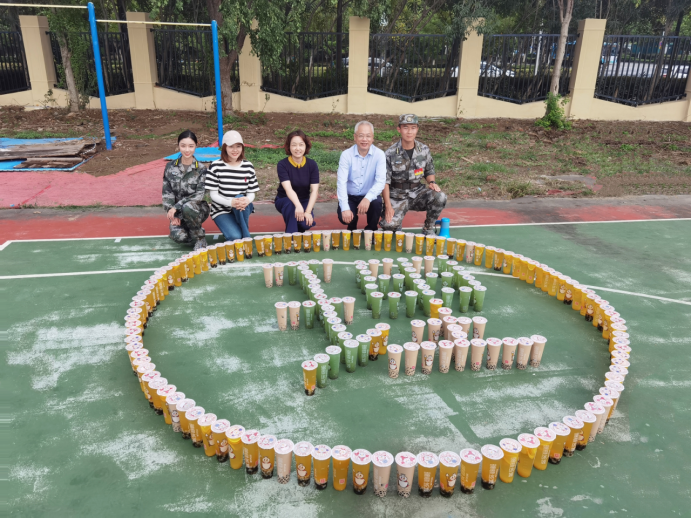 寄语结束后,领导老师们为一同为学生们送上了清凉解渴的果茶,大家的脸上都洋溢着喜悦的笑容。不同口味的果茶围成的“理”字让这份礼物更添一份温暖与真情,进一步增强了同学们归属感与幸福感。