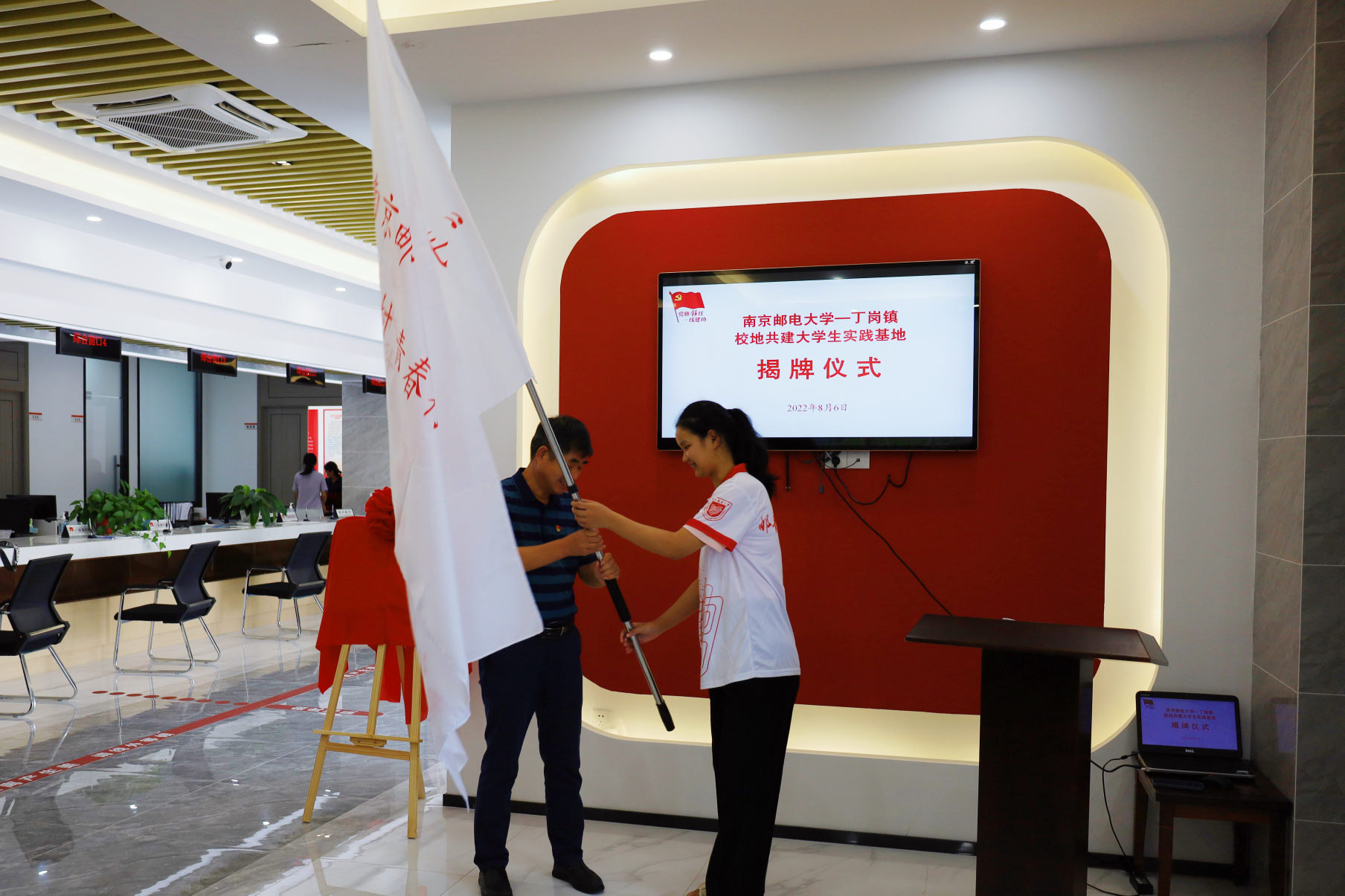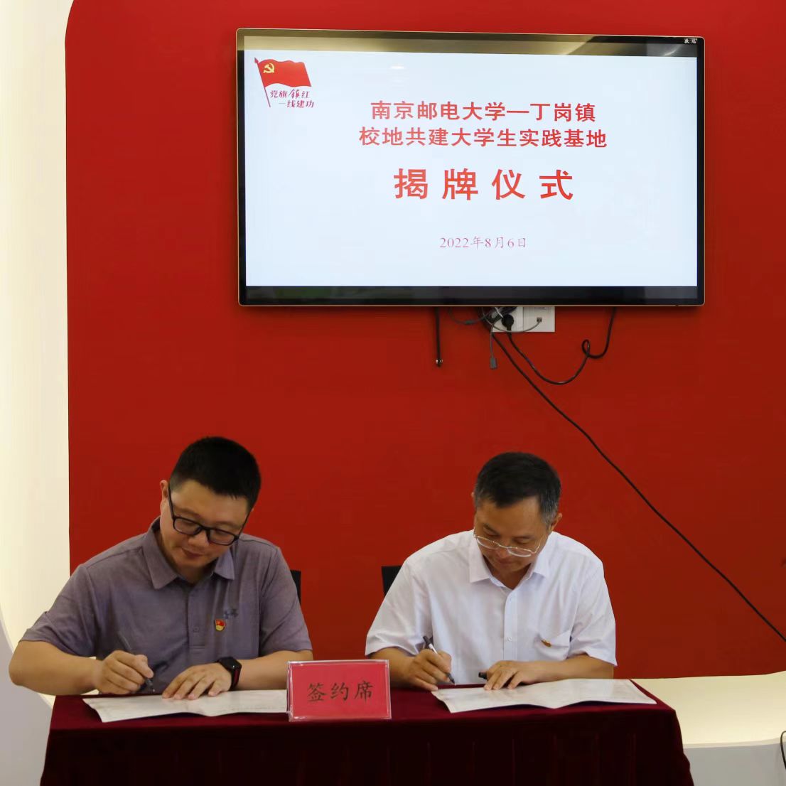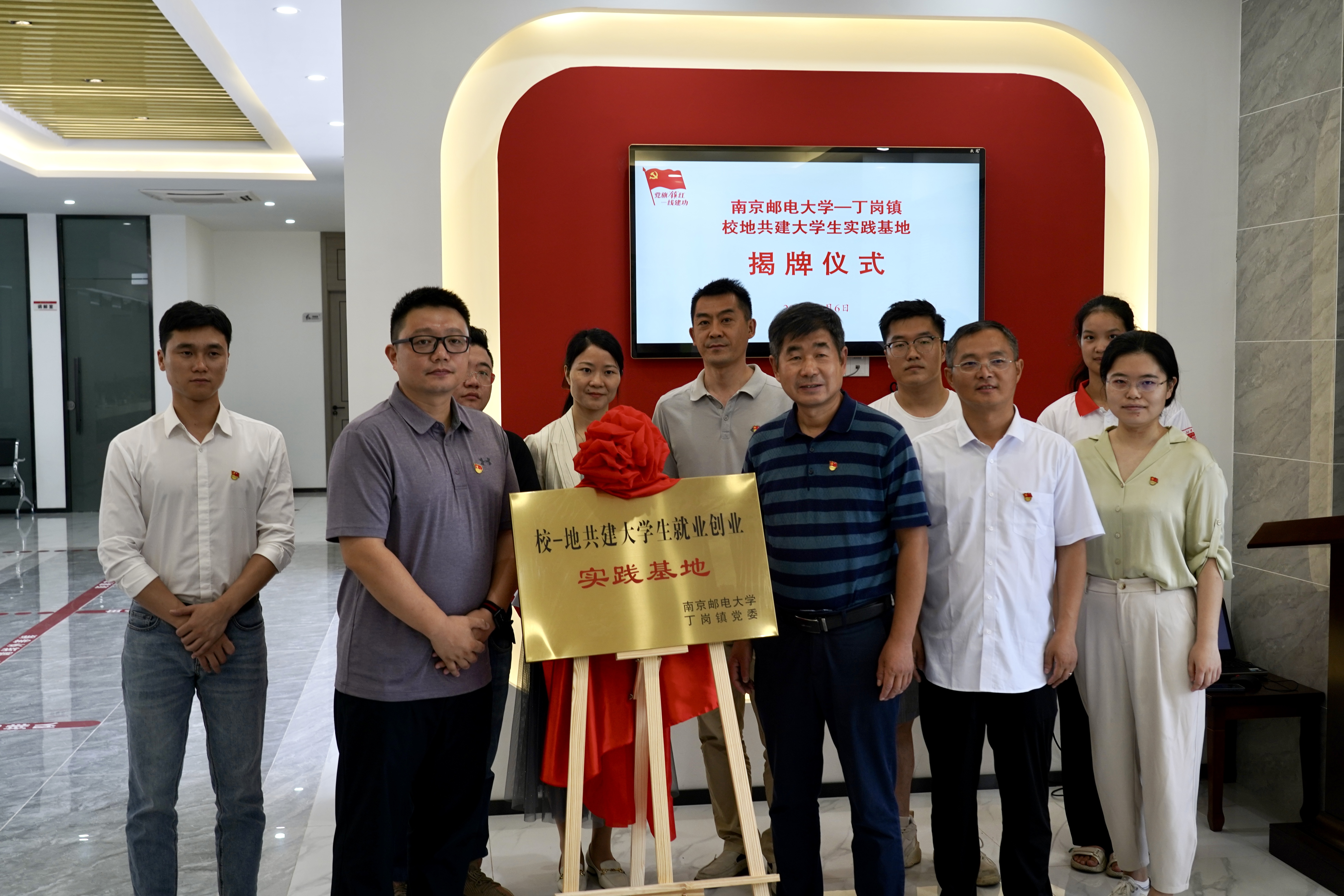 为进一步深化校地协同育人模式,拓宽共建合作平台。8月6日上午,地理与生物信息学院与镇江市丁岗镇政府“校地共建大学生实践基地”签约暨揭牌仪式在丁岗镇党群服务中心举行。丁岗镇党委副书记、镇长唐凯,镇团委书记姚笑涵,首批提供实践场地的丁岗村党总支书记、村委会主任孙笠志,院党委书记朱治安、党委副书记、院长王俊、副院长苗立志、团委书记张田力、2021级辅导员杨泽勋出席仪式。