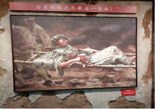 红军长征湘江战役纪念馆全面、系统地展示了湘江战役和红军长征的历程。在馆内,我们参观了红军长征路线图、“浴火重生”浮雕、生死抢渡、脚山铺阻击战……通过一幅幅革命照片、一件件历史文物、一幕幕场景模拟,湘江战役的悲壮历史随着参观的进行徐徐展开,红军战士们“勇于胜利、勇于突破、勇于牺牲”的崇高革命精神渐渐深入我们内心。这其中,有一幅油画尤其令人印象深刻,画作表现的是重伤被俘的红三十四师师长陈树湘宁死不当俘虏的故事,油画上写着“为苏维埃流尽最后一滴血”,这正是他和无数红军将士的真实写照。习近平总书记也曾多次讲述他们的故事:“试想,如果没有这么一批勇往直前、舍生忘死的红军将士,红军怎么可能冲出敌人的封锁线,而且冲出去付出了那么大的牺牲,还没有溃散。靠的是什么?靠的正是理想信念的力量!”