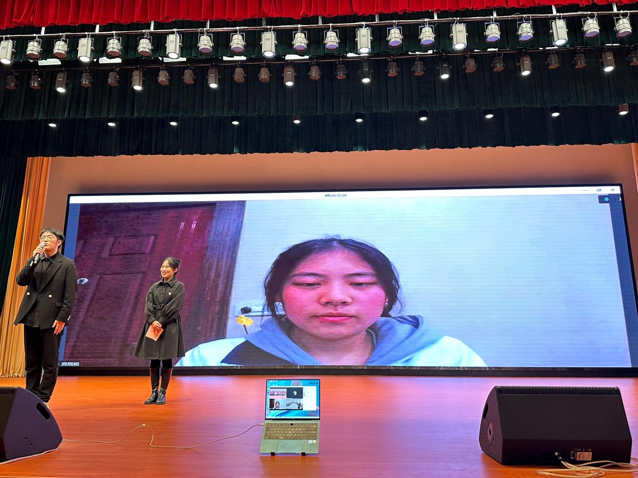活动现场,王佳丽连线了支教地的小朋友们。在场观众积极回应,不仅热情地朗诵了英国诗人约翰多恩的《No Man Is An Island》,还详细地向他们描述了精彩的大学生活,并鼓励他们:“奋斗是青春最靓丽的底色,希望同学们能够做到博学慎思,明辨笃行,做有理想、有担当、能吃苦、肯奋斗的新时代好青年,在青春赛道上跑出好成绩!”活动在热烈而融洽的氛围中圆满落幕。
