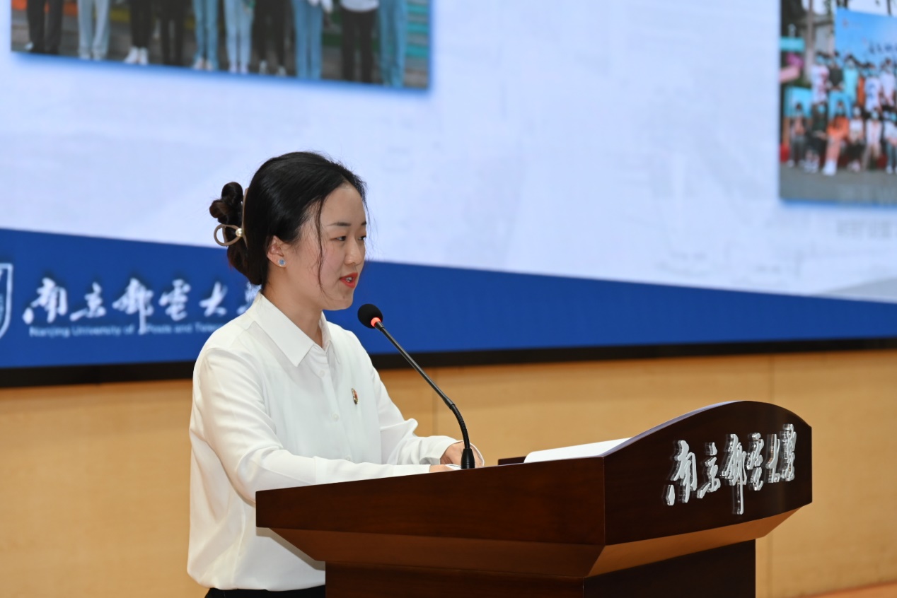 接着,南京邮电大学第十六届第二任学生会副主席,学生社团联合会第十五届主席孙嘉宝老师作主题为《做“摘星星”的人》的经验交流分享,以“初心不改,笃行致远”真情、“咬定青山不放松”的韧性、“满眼生机转化钧”的创新思维为目标,努力去做摘星星的人。最后她呼吁:以理想照亮航程,做“眼中有光”的青年;以奋斗书写答卷,做“脚下有路”的青年;以担当彰显力量,做“肩上有责”的青年;以品行展示风采,做“心中有德”的青年!