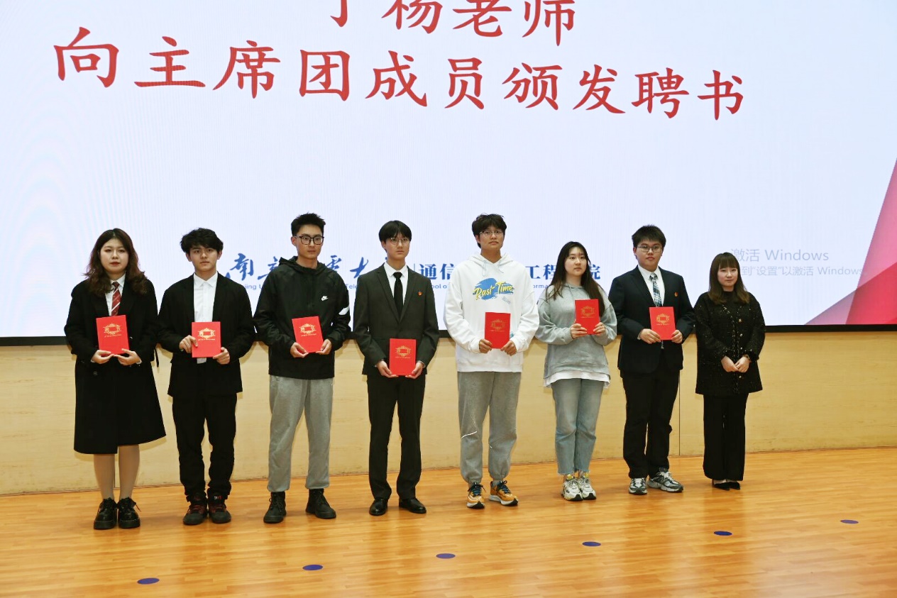 在聘书颁发仪式中,丁杨老师为主席团成员颁发聘书,2021级本科辅导员老师为部门负责学生代表颁发聘书,2022级本科辅导员老师为学生会代表颁发聘书,2020级本科辅导员老师为学生会班级联络员颁发聘书。新的道路,新的征程,聘书是责任的指引,是努力的方向。