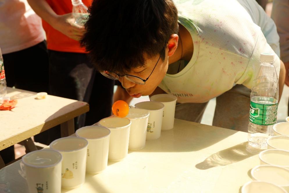 彩虹跑运动员们进行 “吹乒乓球”趣味项目