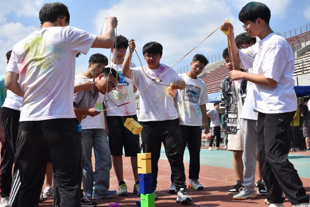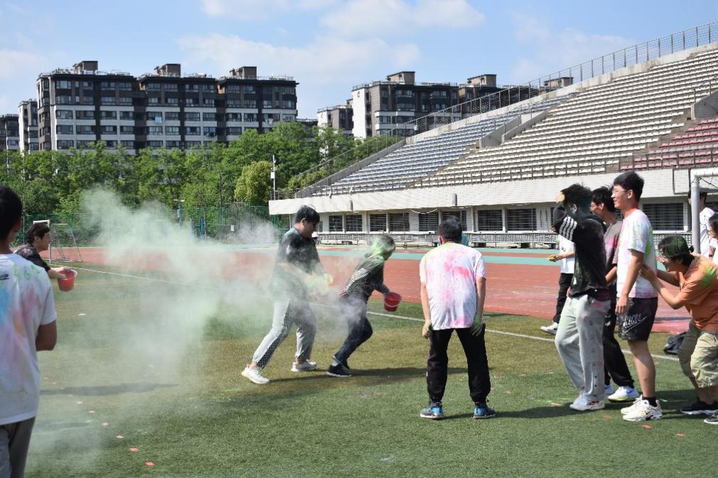 此外,现场还有“跳房子”和“手印彩绘”活动,以及荧光棒、泡泡水、小风车、纸飞机、竹蜻蜓等小玩具,同学们还在比赛结束后尽情挥洒彩粉,寻回儿时的记忆,重温童年的简单快乐。