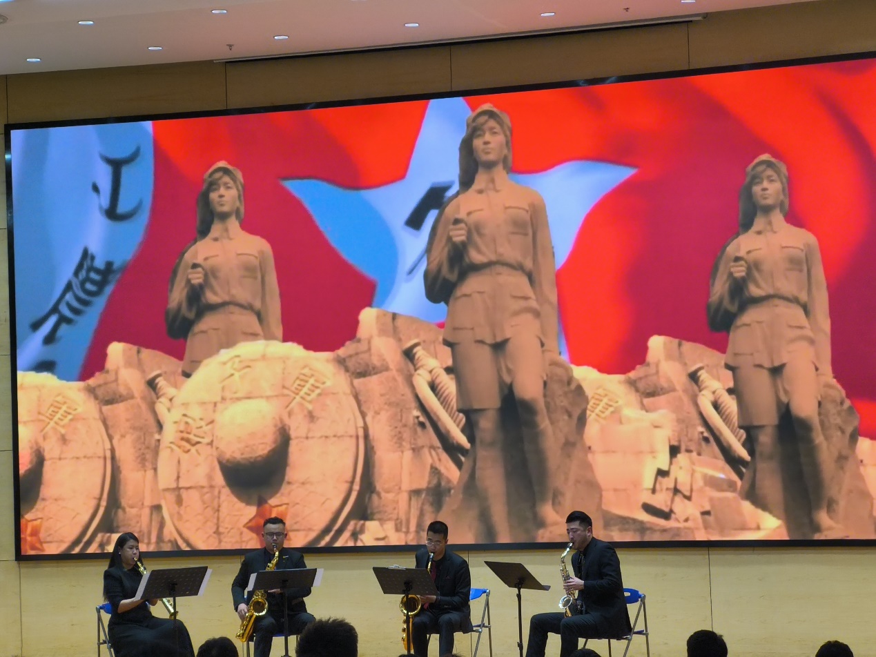 为更好地用中国梦激扬青春梦,进一步培育和践行社会主义核心价值观,弘扬主旋律,传播正能量,5月8日晚,社会与人口学院邀请江苏东方交响管乐团为学校第155期菁英班学员带来了DO萨克斯四重奏音乐会。本次音乐会邀请到乐团的四位演奏家进行演奏,活动由武颂凯老师主持。