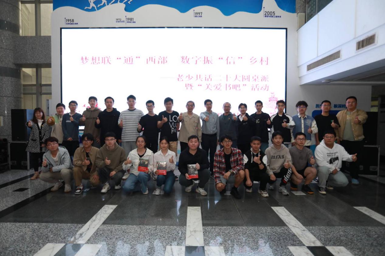 为深入学习习近平总书记给中国农业大学科技小院的重要回信,进一步弘扬“奉献、友爱、互助、进步”的志愿精神,建设农业强国,切实推进大学生志愿服务西部计划育人实效,通信与信息工程学院于5月22日下午在三牌楼校区科研楼一楼大厅举办“梦想联‘通’西部 数字振‘信’乡村”老少共话二十大圆桌派暨“关爱书吧”活动。校关工委副主任马名骞,学院党委书记徐雷、副书记王晶、毕业班辅导员代表赵厚,2015级校友、江苏海安市自然资源和规划局团支部委员雅周分局一级科员张杰及毕业生代表参加。活动由学院分团委书记丁杨主持。