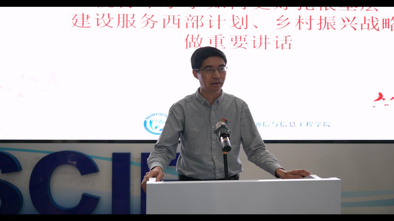 王晶副书记从积极参与农村通信建设、利用自身专业优势带动农村经济发展、投身农村教育事业三个方面介绍了通院青年投身西部农村的意义,同时为大家指出了西部计划和乡村振兴计划建设的方式方法,希望同学们用火热的青春投身农业强国建设,书写乡村振兴的青春华章。