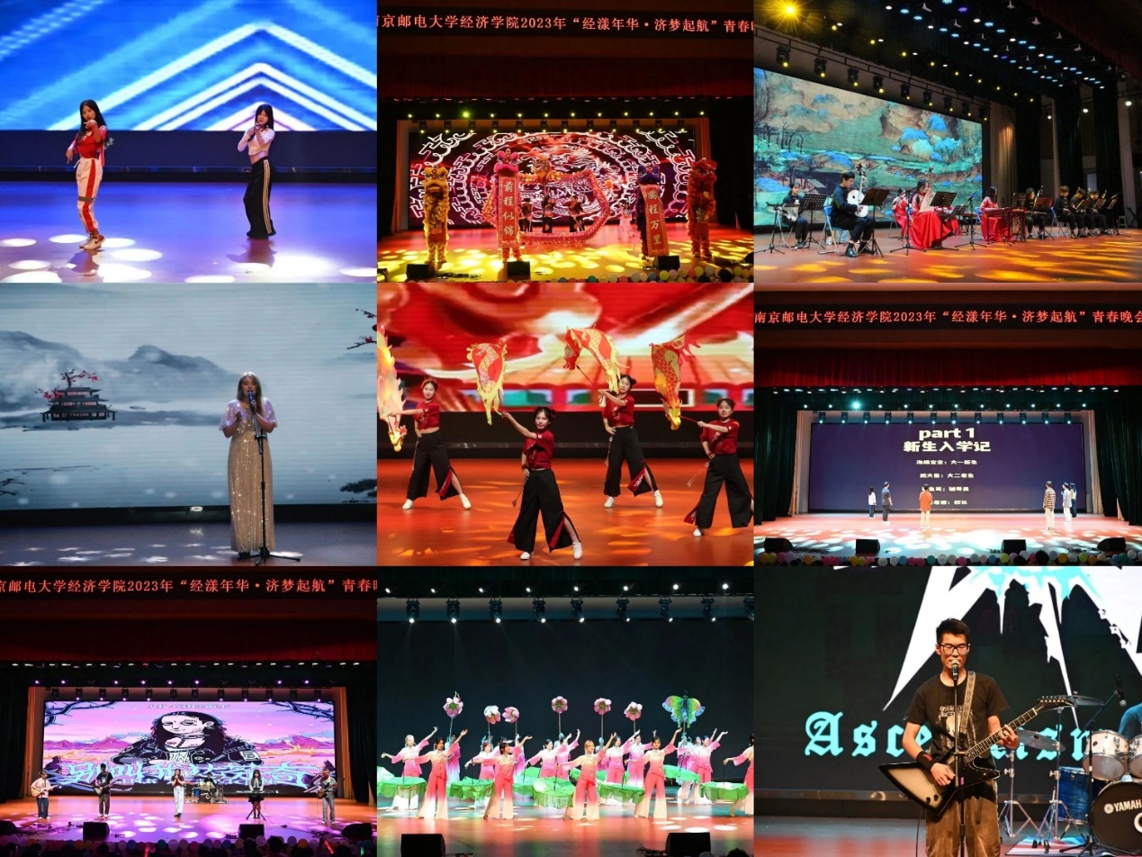一曲《龙腾华夏》,龙狮团龙队狮队震撼出场,给人视觉和心灵的碰撞!在璀璨的灯光下,六位主持人华丽登场,本届青春晚会正式开始。院党委书记董军老师对本次晚会发表致辞,他对本次学院青春晚会顺利举办表示祝贺,值此毕业季,也对经济学院2023届毕业生和广大在校生送上美好祝福。在热列的欢呼声下,演出正式开始,经院柚子们一展芳华。舞蹈《solo》给我们以酷炫的开场;民乐《山语·幻》带我们放慢步履,倾听民间乐曲述说静谧的故事;彩带龙《盛世欢歌》歌颂今日华夏之盛;独唱《在水一方》,带我们品味旧时光的味道;荷花龙《南湖春色》于烟雨江南中尽展朦胧之美;配音秀《我的大学生活》诙谐风趣引爆全场;歌曲《别叫我达芬奇》动感激燃;影子舞《旅程》蕴含深意,回忆校园点滴;小品《谁杀死了周日》网络热梗接连不断,独具特色;歌曲《追光者》激励大家勇敢追梦;诗朗诵《彼方尚有荣光在》让我们踏实奋斗,拥抱梦想;舞蹈《被套也疯狂》古灵精怪;魔术抽奖环节更是玄妙,引得掌声不断。晚会在全体演职人员的大合唱中落下帷幕!