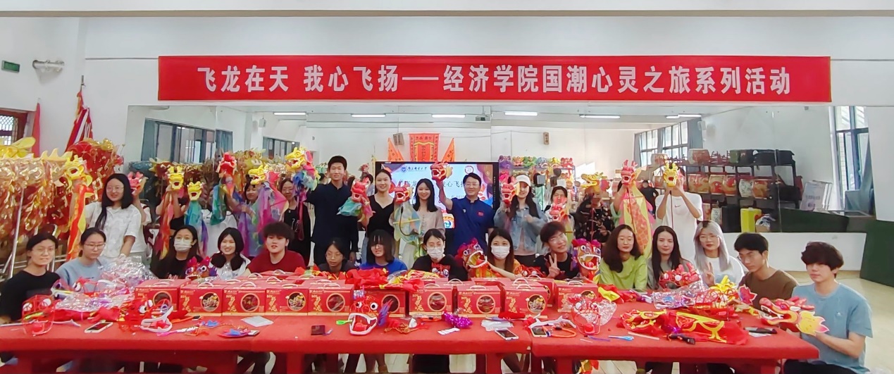 为迎接“5.25”全国大学生心理健康节,进一步加强心理健康教育,丰富大学生课余生活,5月25日下午,经济学院在校体育馆江苏龙狮训练基地和图书馆大草坪,开展“飞龙在天,我心飞扬——国潮心灵之旅”系列活动。学院党委书记董军、本科生班主任刘晶晶、2022级辅导员储宜旭,以及在校同学参加了本次活动。