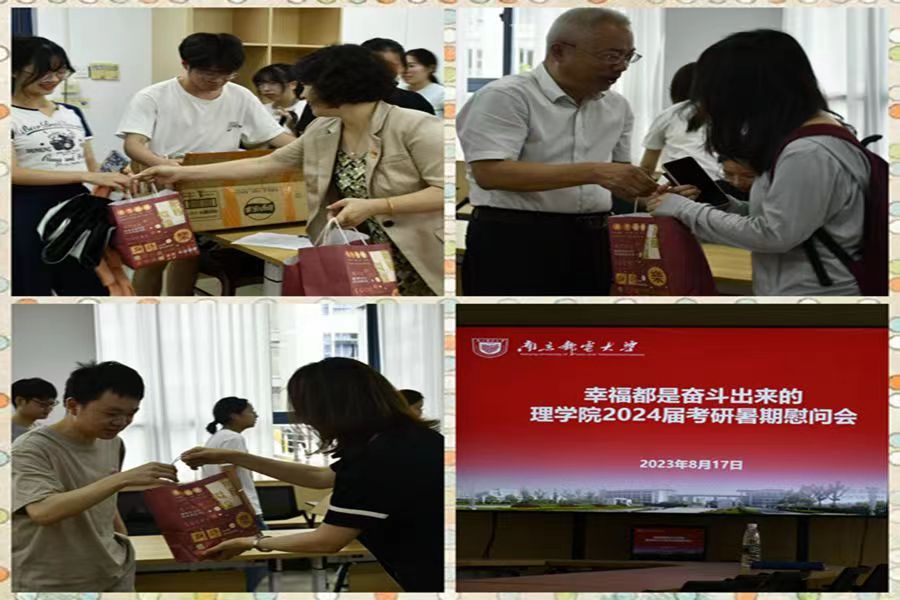 夏日酷暑送清凉,丝丝关爱润心田。为切实帮助考研学子坚定考研目标,缓解备考压力,8月17日上午,理学院在教2-327开展2024届暑期留校学生考研慰问会。学院党委书记尹志丽、院长唐加山、2020级本科生辅导员黄庆花以及暑期留校全体考研学生参加活动。本次活动由学院党委副书记、副院长汪颖主持。
