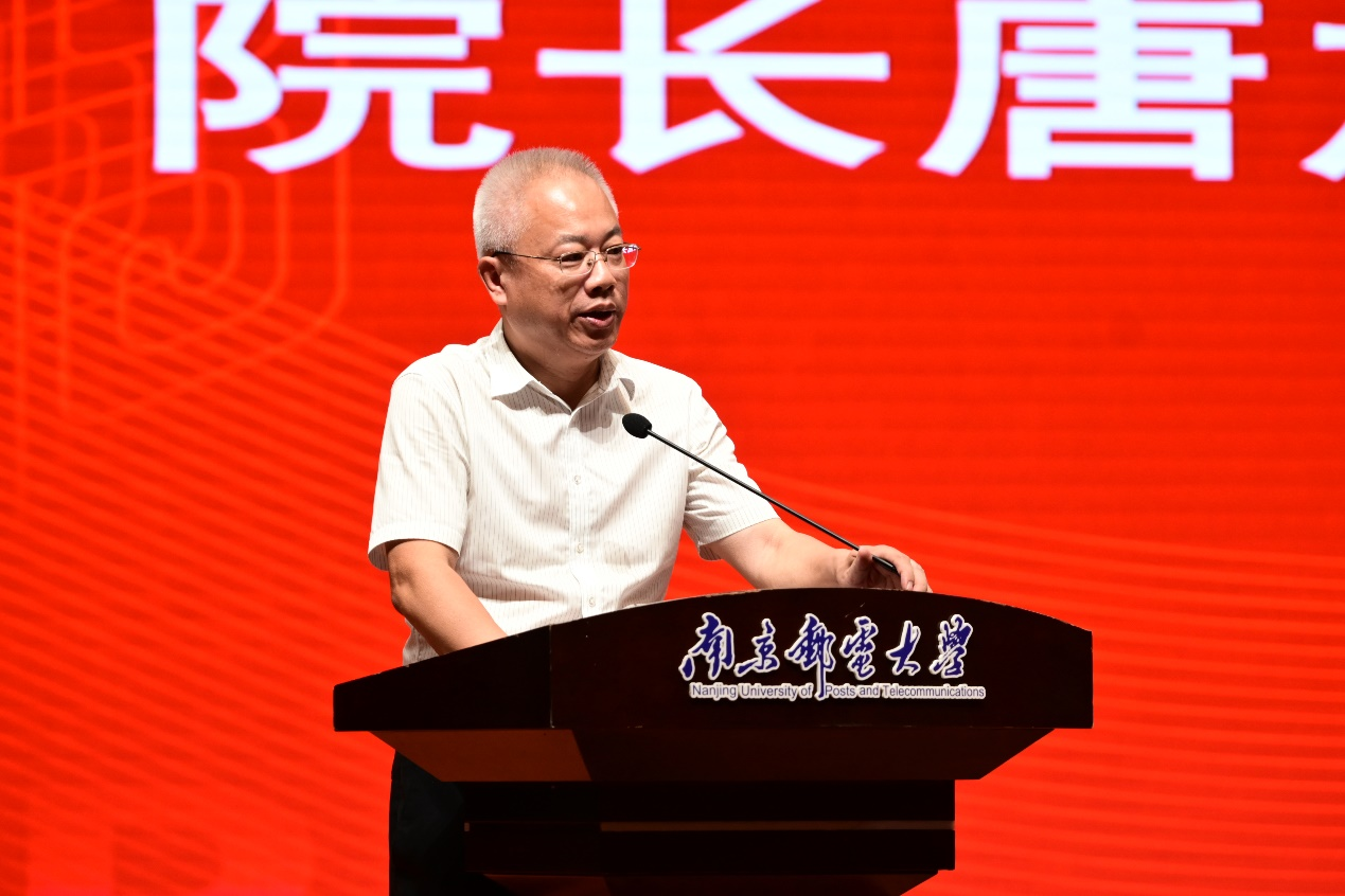 大会在庄严的国歌声中正式开始。院长唐加山代表学院领导和全体师生,对新同学的到来表示热烈的欢迎,并祝贺同学们金榜题名、成功迈入人生新阶段。他介绍了理学院开设专业的基本情况和学院师生近年来取得的各项教学、学术创新成果,并鼓励同学们既要培养高尚的道德素养以及过硬的心理素质,又要具备团结协作精神,努力将自己打造成“勤钻研、高素质、重协同”的新时代信息人才。