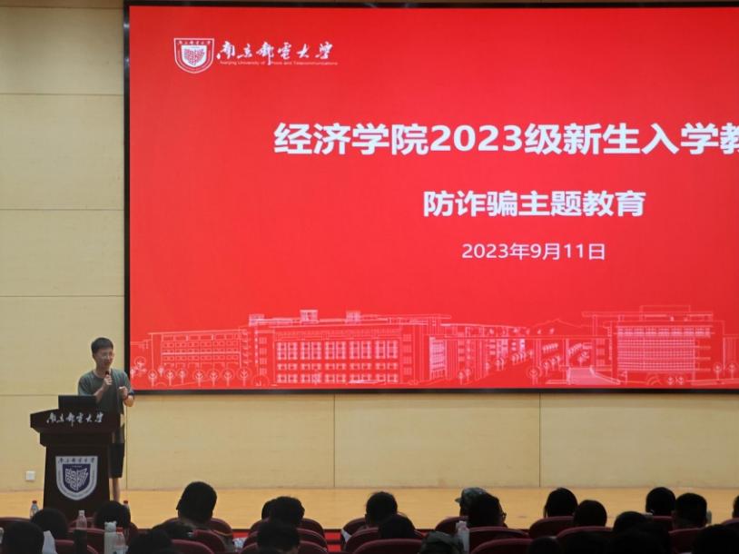 为进一步增强新生防诈骗意识、提高安全防范及自我保护能力,营造和谐、健康、安定的校园环境,9月11日晚,经济学院于图书馆四楼报告厅开展了2023级新生入学教育——防诈骗主题讲座。本次讲座由铁路公安处南京南站派出所邱元旺副所长主讲,2023级新生辅导员尤波老师及2023级全体本科生参加本次讲座。