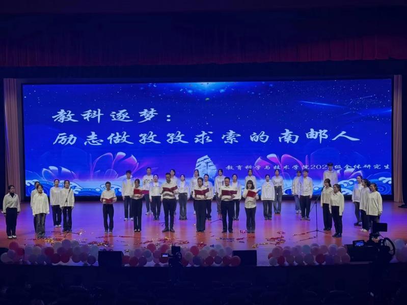 学海无涯,追梦之路漫漫。研究生同学们慷慨激昂的诗朗诵《教科逐梦》彰显着他们对个人理想的不懈追求和顽强奋斗的坚定信念,也激励着同学们要勇于追梦,敢于逐梦。少年何惧岁月长,彼方尚有荣光在。