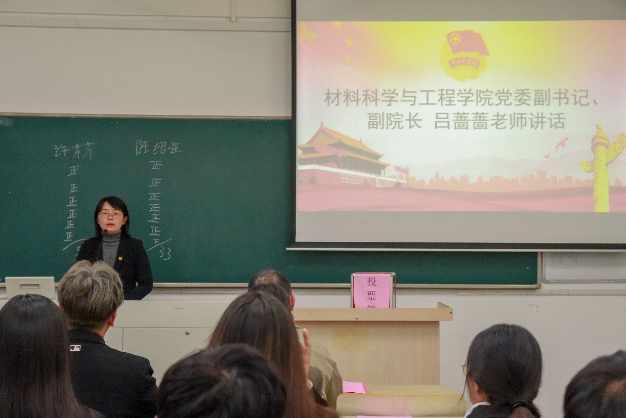 2023年11月8日晚,南京邮电大学材料科学与工程学院第四次研究生代表大会在仙林校区教3-507顺利召开。学院党委书记高志华老师、党委副书记、副院长吕蔷蔷老师、分团委书记李娜老师、2021级研究生辅导员乔松岭老师、2023级研究生辅导员赵赫男老师及学院全体研究生学生代表参加了本大会。大会由材料科学与工程学院研究生陈绍强同学主持。