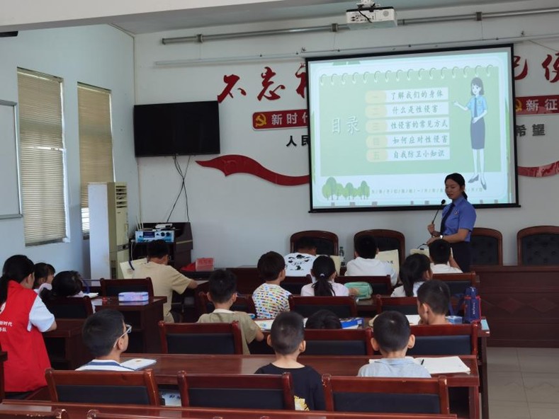 影片余温未散,实践团成员们和孩子一起参加了“守护花季行,自护有法宝”宣讲活动。在活动中,检察官用情景动画、互动问答,把知识拆解成易懂的“三不要”口诀:“不要慌、不要藏、不要沉默!”,安全的种子已悄悄发芽。