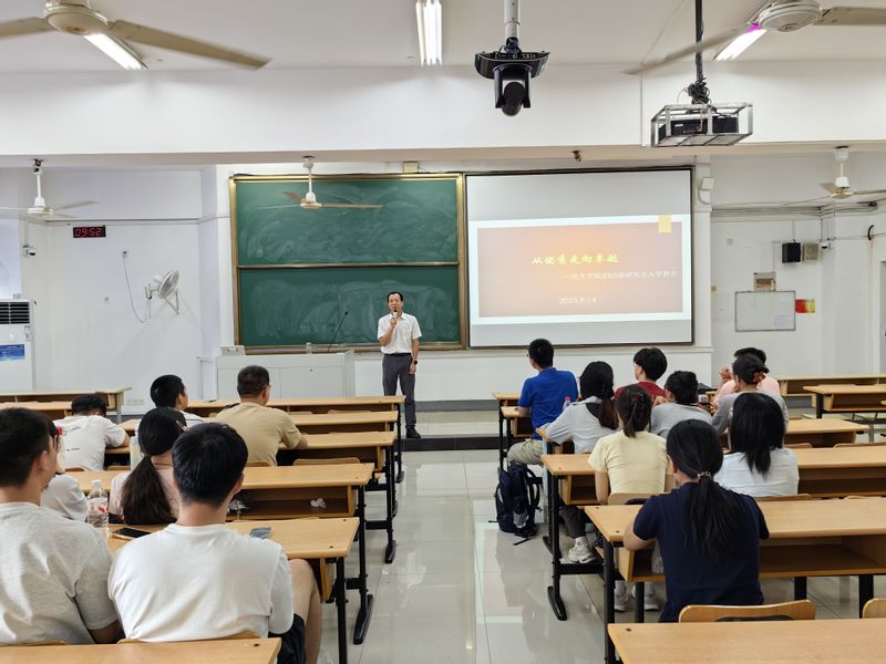 9月14日上午,化学与生命科学学院于南京邮电大学仙林校区教4-308开展以“从优秀走向卓越”为主题的2025级研究生理想信念教育。学院全体2025级研究生新生参与,学院党委副书记张建平主讲,学院研究生辅导员窦浩铭参加。