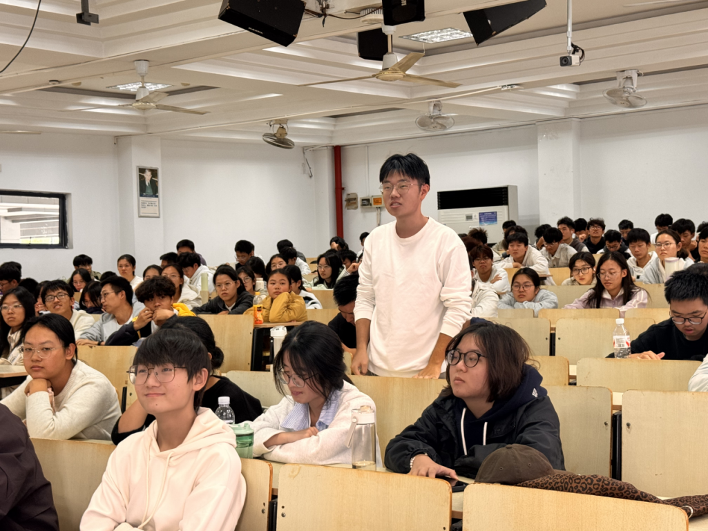 在随后的提问环节,同学们踊跃提问,就技术细节、团队组建、竞赛心得与学长进行了深入交流,现场学术氛围浓厚,掌声阵阵。