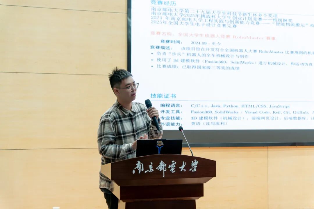 2023级本科生何宇锌、2024级本科生邢展宾则聚焦科创竞赛心得,分享了备赛过程中的挑战与突破、团队协作中的磨合与成长。他们鼓励学弟学妹们勇于尝试、不惧失败,在科创道路上保持热情与坚持,充分发挥团队的力量,在一次次打磨中提升作品质量,实现自我突破。