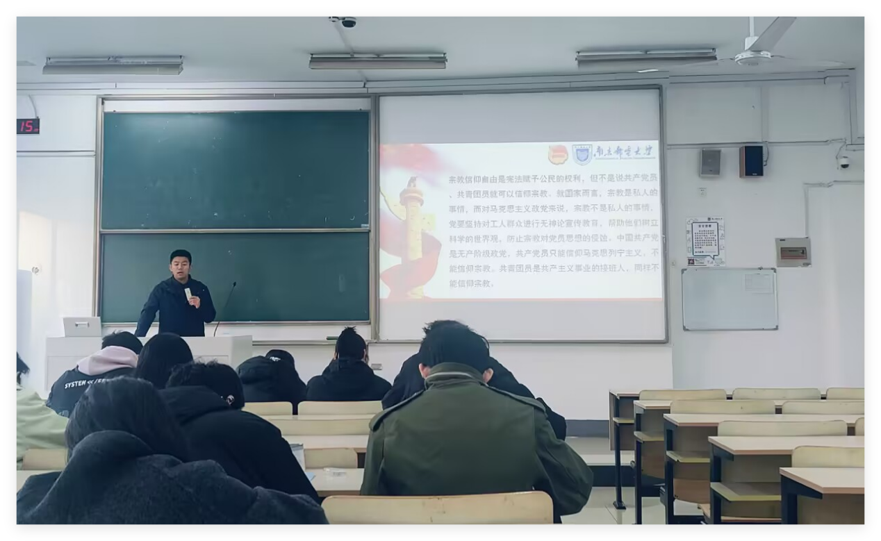 2025年11月21日,南京邮电大学化学与生命科学学院以“推进从严治团,争做合格团员”为主题开展信仰公开课。该课程由学院分团委书记窦浩铭主讲。