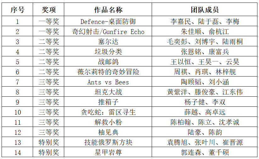 经过激烈角逐,一批极具创意与较好完成度的作品脱颖而出,他们用实力展现了编程设计的极大魅力!让我们恭喜以下获奖团队及个人!