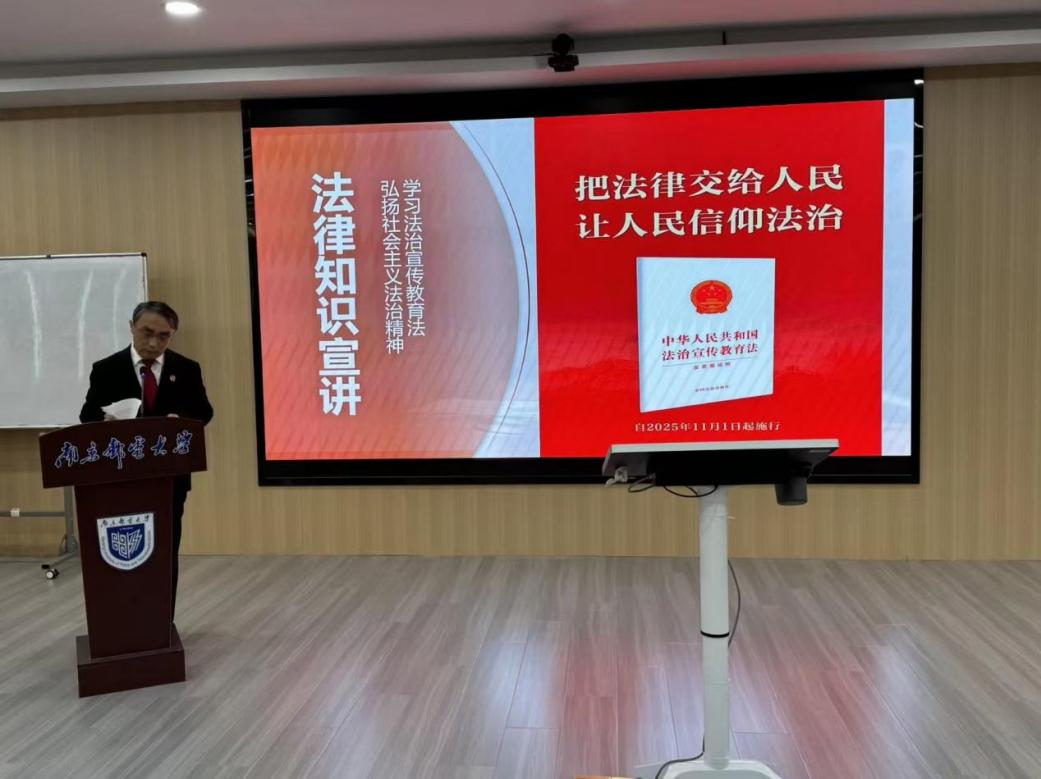 为深入学习贯彻习近平法治思想,提高校园法治宣传教育实效,进一步加强青年学生法治教育,2025 年 10 月 22 日下午,学院“法治宣传进校园,护航青春助成长”法治宣传主题讲座在仙林校区教1-300举行。本次讲座特别邀请到了栖霞区法院审委会委员、少家庭庭长、一级法官、学院法治辅导员张亮作为主讲人,为全体菁英人才班学员带来了一场内容丰富、深入浅出的法律知识盛宴。本次讲座由学院分团委书记丁杨主持。