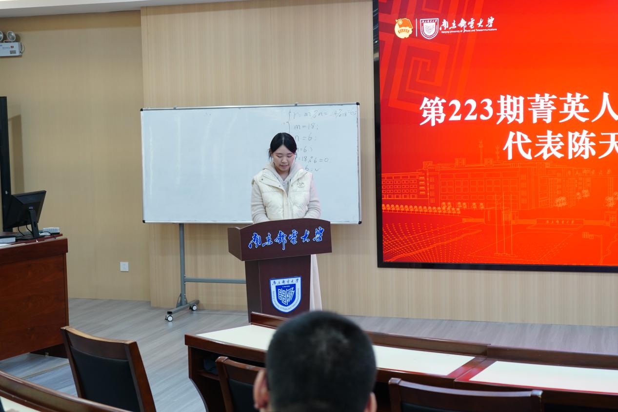 11月11日,南京邮电大学第223期菁英人才学校学习成果交流研讨会暨结业典礼在教1-300教室顺利举行。波特兰学院分团委书记、2025级本科生辅导员王振宁老师出席典礼,第223期菁英人才班全体学员参会,学院青年学习社主席团成员秦珂涵主持典礼。