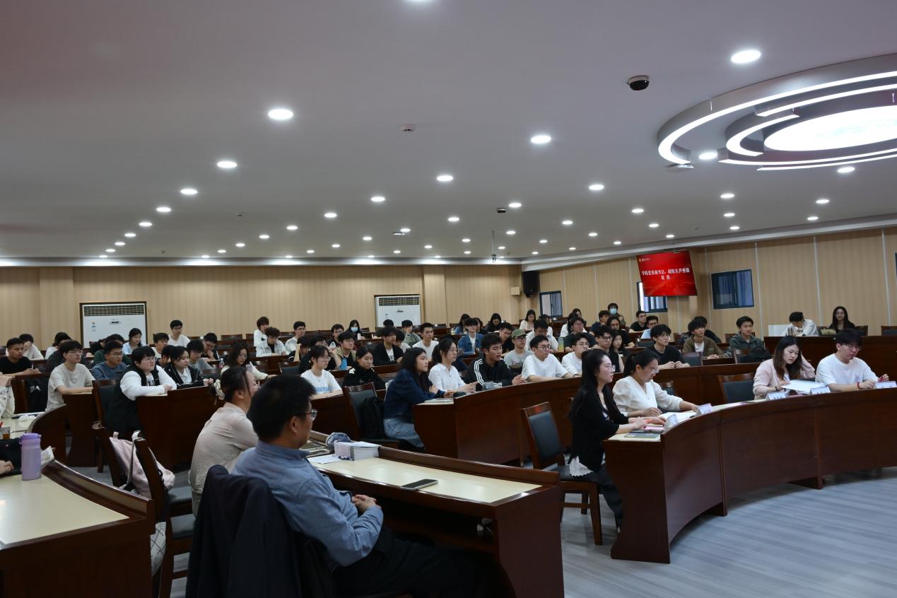 随后,校关工委讲师团成员沈召前老师为大家讲授了菁英人才班的第一课。沈老师以“深刻把握习近平新时代中国特色社会主义思想的世界观和方法论”为题,系统解读了“坚持人民至上、自信自立、守正创新、问题导向、系统观念、胸怀天下”的深刻含义,并结合中国式现代化实践,让学员们深刻认识到“六个坚持”在指导实践、推动工作中的重要作用。