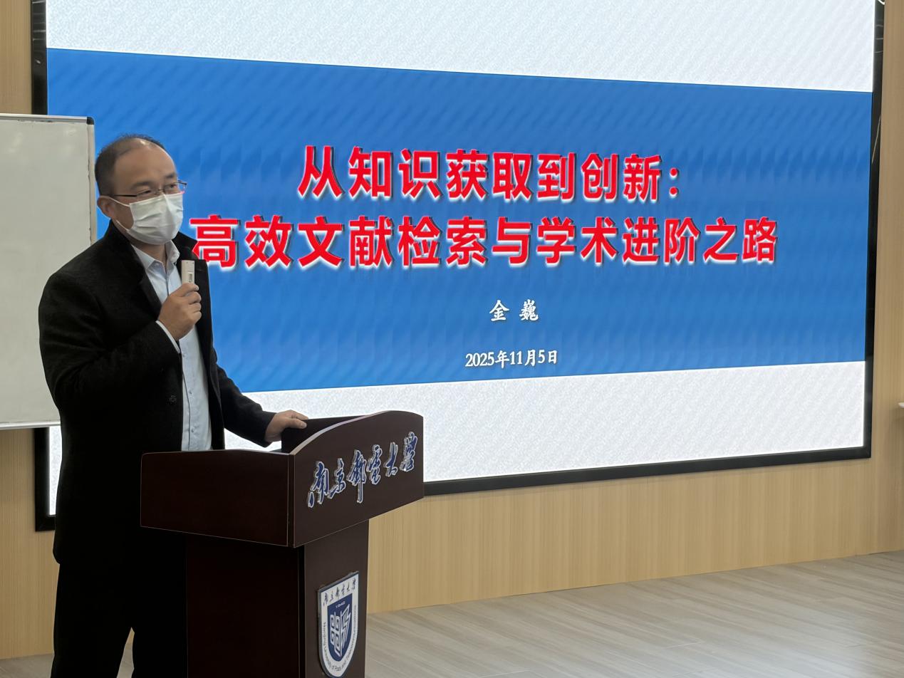 讲座伊始,金巍老师从当前信息爆炸时代的学术环境切入,指出了高效文献检索对于学术研究的重要性。他强调,良好的检索习惯不仅能节省大量时间,更是通往学术创新的必经之路。针对同学们常遇到的“资料头秃”困境,金老师指出,这往往是因为缺乏系统的检索策略和对专业数据库的了解。在核心内容环节,金老师结合实际案例,深入浅出地讲解了文献检索的“实战技巧”。他详细介绍了国内外主流学术数据库的特色与使用差异,并重点演示了如何利用高级检索功能——通过布尔逻辑运算符的组合、精确匹配与模糊匹配的切换,快速从海量信息中定位到高相关度的核心文献。