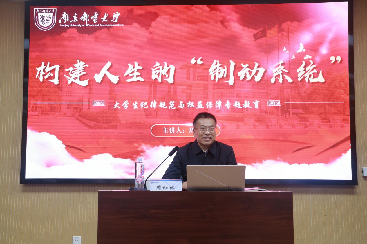 为深入学习贯彻习近平法治思想,扎实推进学生法治与纪律教育,11月26日,经济学院特邀省纪委监委派驻南京邮电大学纪检监察组组长、校党委常委、纪委书记周和林为第二百一十八期大学生菁英人才学校专题授课。院党委书记刘挺主持课程学习。