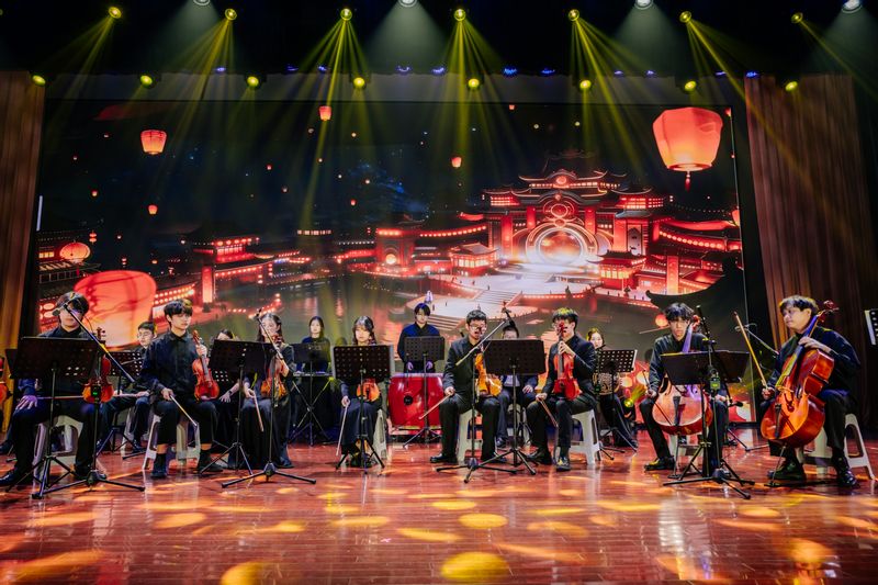 展演以“承国脉·创未来”为核心主线,12个精彩节目轮番登场,生动诠释家国情怀与青春担当。舞蹈《东方红》《第一课·使命必达》再现革命者与通信战士的赤诚初心;合唱《沂蒙山歌》、朗诵《我心中的岛》、表演唱《落叶归根》深情传递家国眷恋;管弦乐《华灯星聚》奏响昂扬序曲;民乐合奏《山语·幻》让传统文化焕发新生;音诗画《邮青春·邮梦想》、话剧《奔跑者》书写南邮人科技报国的奋斗历程;龙狮舞《龙腾华夏》气势磅礴,舞出青年与祖国同频共振的信念与担当;舞蹈《This is me》彰显青年自信锋芒;歌曲《灯塔》传递理想坚守。多样艺术形式交相辉映,以青春旋律奏响时代强音,尽显南邮学子朝气蓬勃的精神风貌与向上向善的价值追求。
