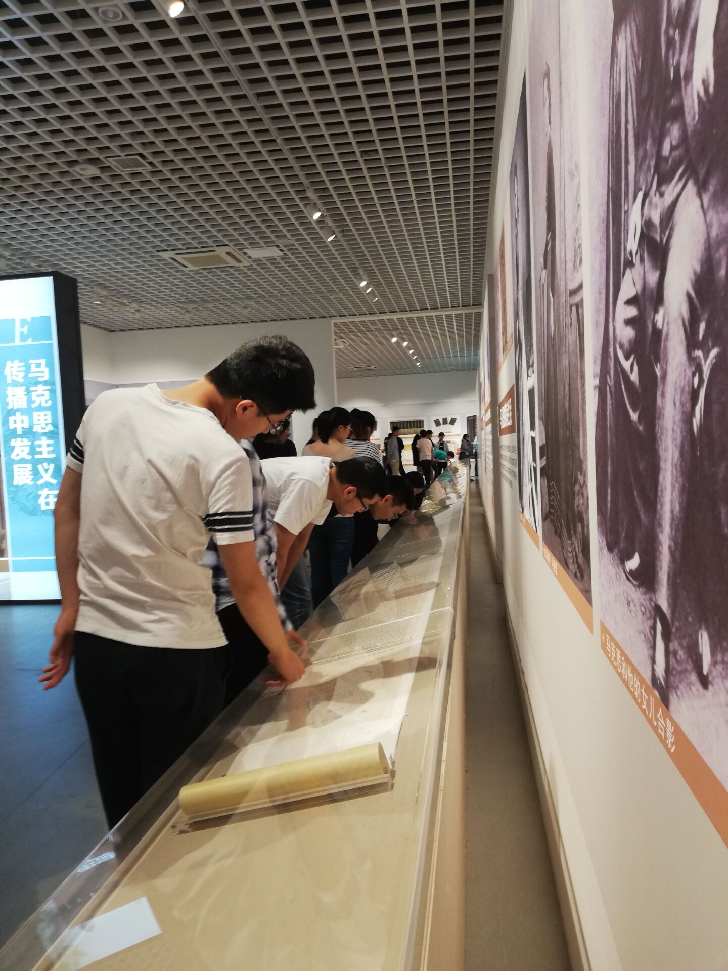 历史文献展以恢宏的叙事方式向众人展示了马克思追求真理和实现人类解放不懈奋斗的一生。在讲解员的讲解下,同学们分别参观了“马克思主义哲学的诞生”、“社会主义从空想到科学的发展”、“剩余价值的发现”、“马克思晚年的生活和探索”、“马克思主义在传播中发展”五个伟大历史阶段的展览。通过参观珍贵的实物与档案文献,同学们更加直观地了解感受到了马克思主义形成发展至今风云激荡的历史过程。