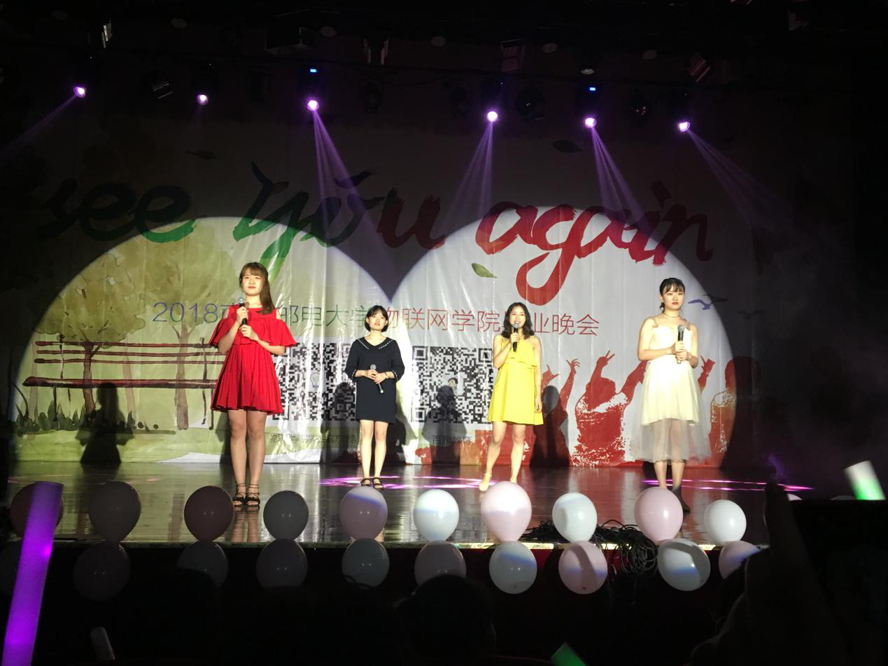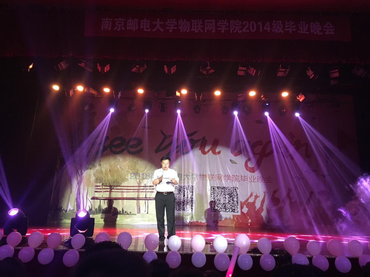 挥手道珍重,昂首笑春风。5月27日晚,物联网学院举办的“See Yóu Again”2018届本科生毕业晚会在青春剧场圆满落下帷幕,本次晚会汇集了歌唱、舞蹈、器乐、小品等多种表演形式,内容丰富,构思新颖,精彩纷呈。现场字幕预热,微信墙互动,辅导员寄语微视频等方式营造出温馨感人的氛围,亦表达了对毕业生的祝福和勉励。院党委书记周健老师、院分团委书记兼16级辅导员姚真真老师、14级辅导员李桐安老师、14级辅导员徐玉华老师出席并观看了本次晚会。
