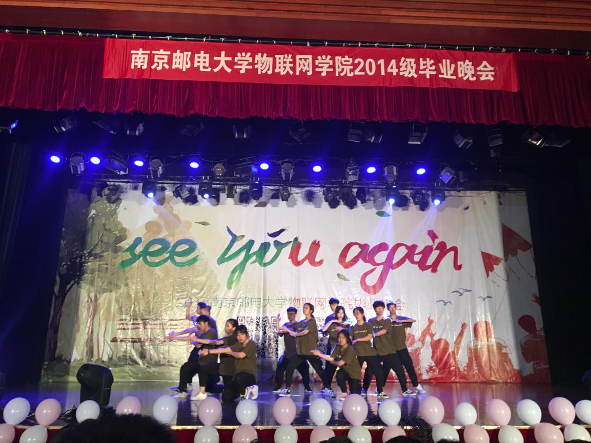 令人印象最为深刻的是晚会最后的“彩蛋”——毕业生代表与辅导员合唱。同学们用歌声唱出了对母校的感激和眷恋。歌曲结束后毕业生们登上舞台,齐声高喊“物联网学院毕业快乐”,与最亲爱的辅导员和朝夕相处的同学留下珍贵的合影。