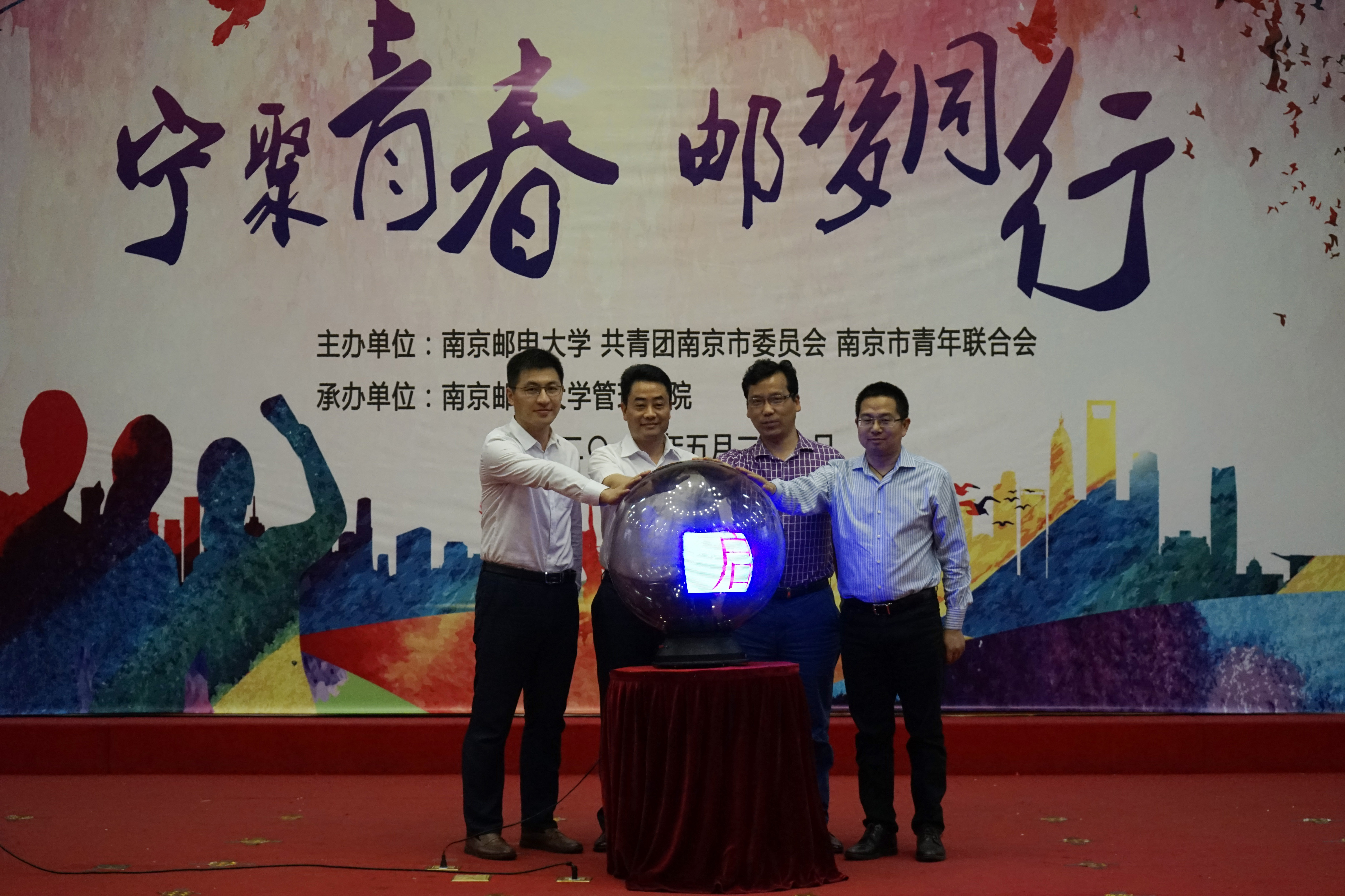 在启动仪式中,与会领导与导师代表一起按下启动球,象征着“宁聚青春 邮梦同行”系列活动正式启航。