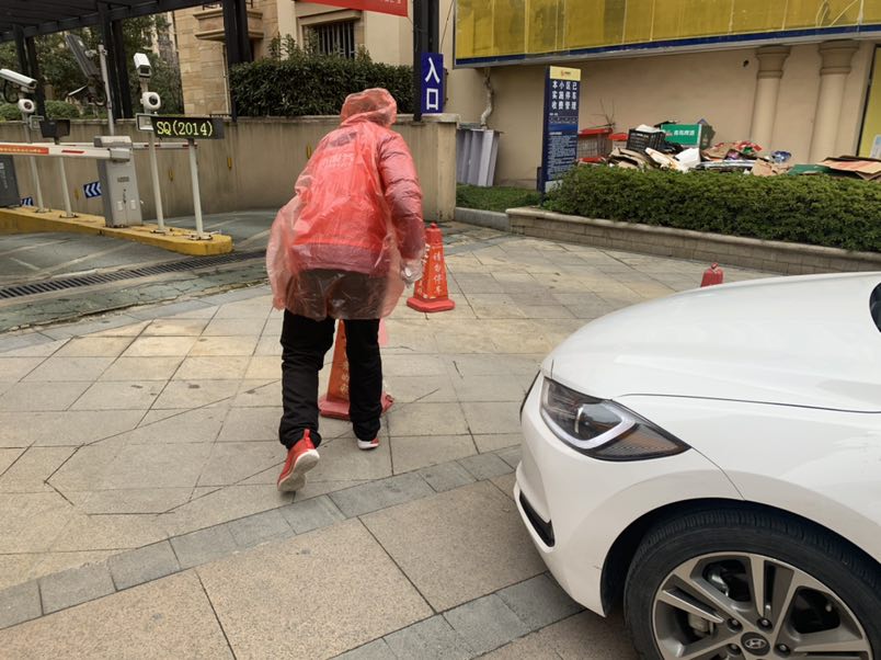 我每天的工作是:1、检查来往人员的社区通行证;2、为进出社区的人员测量体温;3、提醒居民尽量减少外出,不要聚餐聚会。虽然工作内容简单重复,但是要确保没有外人进出社区却并不容易。工作中除了要与形形色色的进出人员交流沟通,还要面对天气的变化无常。一只口罩,一件一次性雨衣,就是我的全部装备。尽管条件艰苦,但一想到前线的战士为了战胜疫情不顾一切,寒冷、暴雨就显得微不足道了。