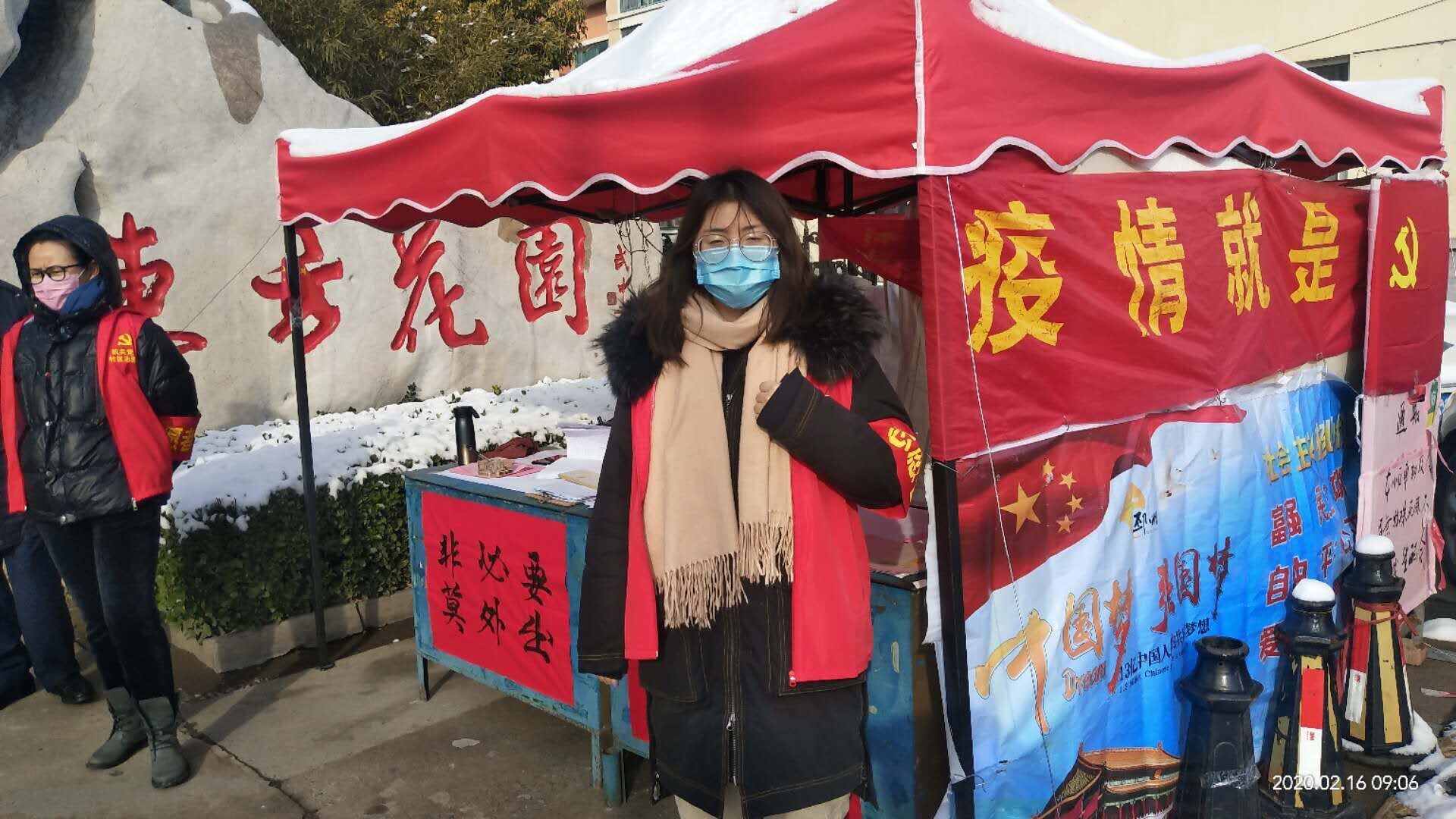 无论是夜幕还是白昼,无论是寒风袭面还是大雨倾盆,他们都坚守在自己的岗位上,测量体温,核查人员,登记信息,外出劝返,一项项工作细致入微,他们知道,自己的肩上背负的是身后无数居民的安全与健康。他们表示:“国难当头,作为一名新时代大学生,一名共青团团员,在国家需要自己的时候必须挺身而出,毫不退缩,为国家和人民献出自己的一份力量,我们一定要坚守到疫情的最后一刻!”