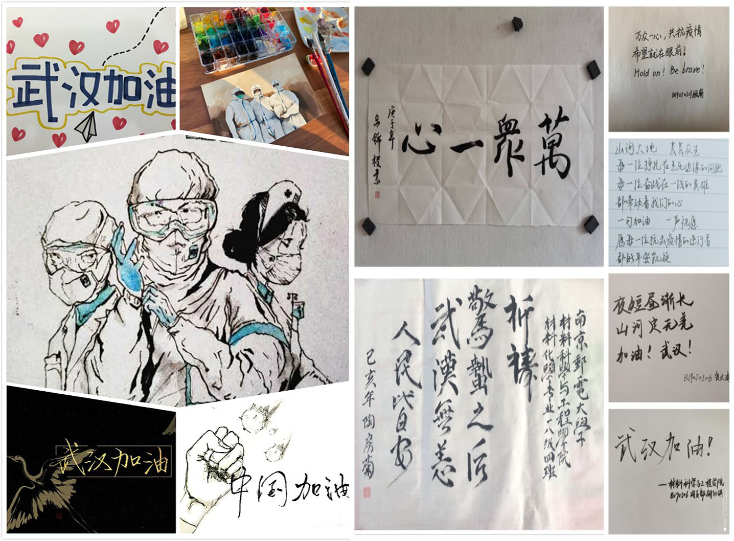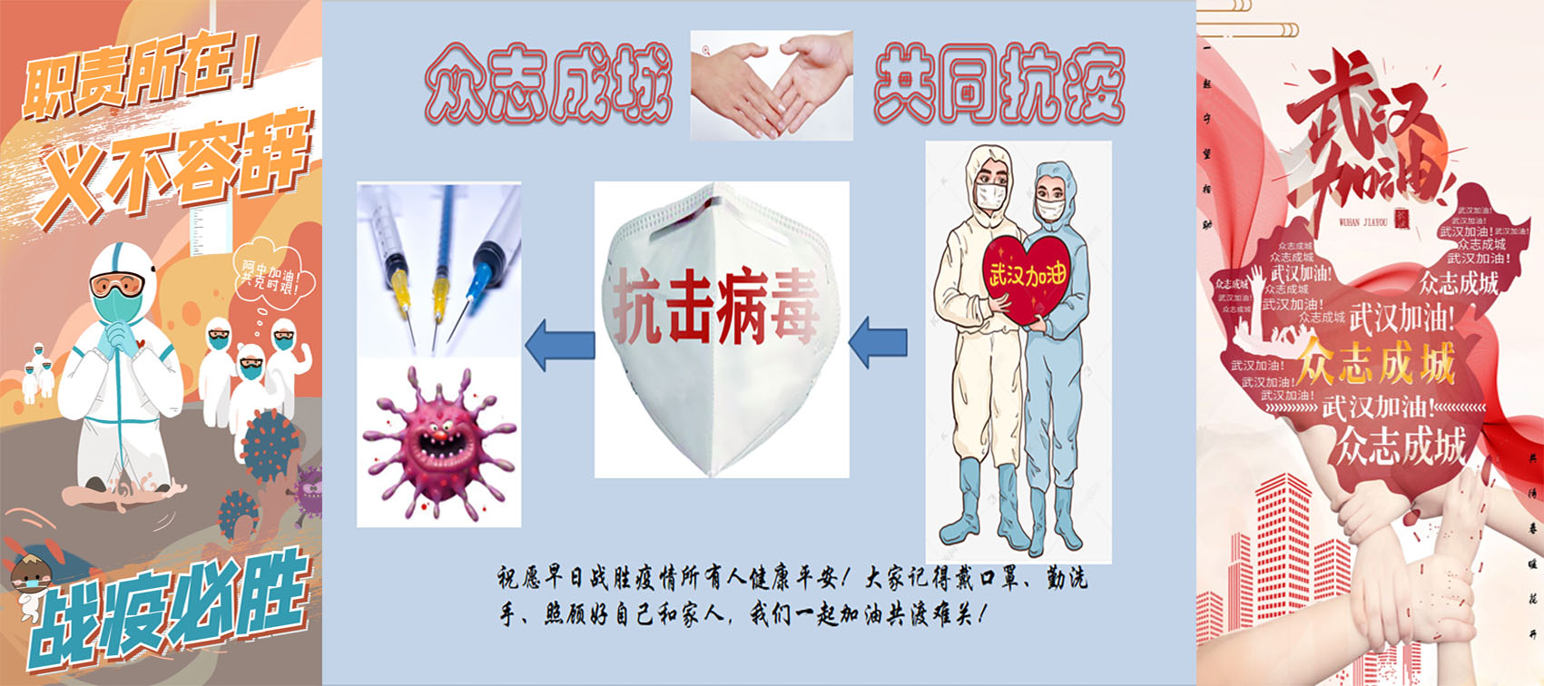 开展“众志成城,共克时艰”抗疫作品征集活动,同学们通过海报,绘画,书法作品传递抗疫之心。