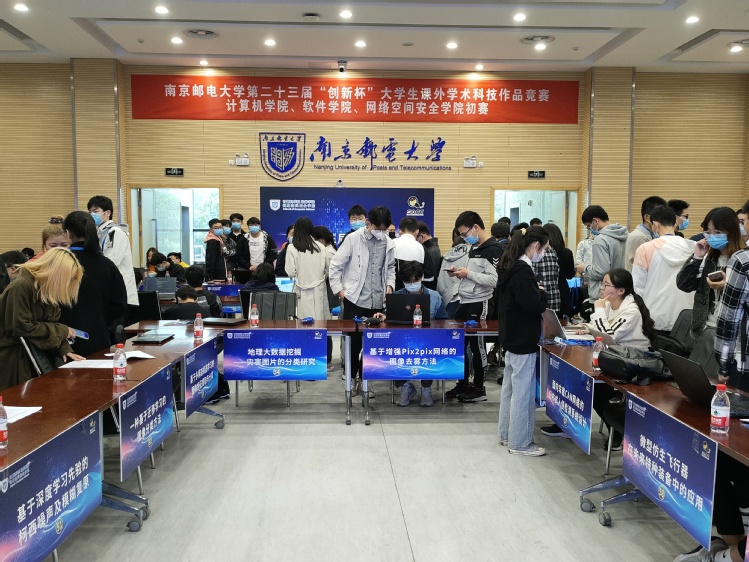 为遴选优秀作品参加校赛,组织同学参观学习优秀项目,学习交流相关科创经验。2021年10月20日下午,第二十三届“创新杯”大学生课外学术科技作品竞赛计算机学院、软件学院、网络空间安全学院初赛在计算机学科楼报告厅举行。