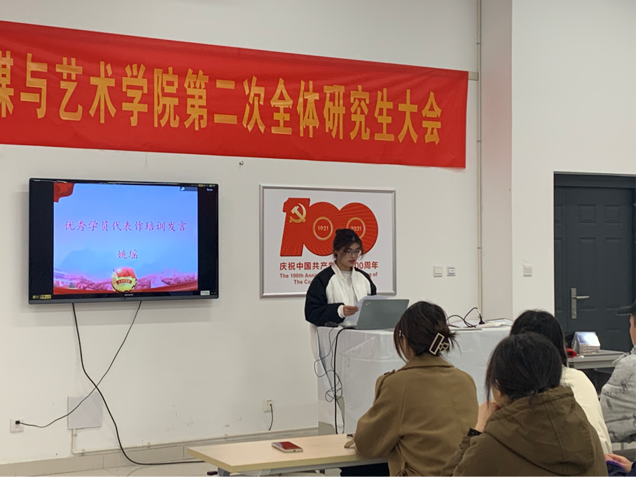 随后,由优秀学员代表姚瑶上台发言,姚瑶作为菁英人才培训班优秀学员代表上台发言并对菁英人才班的学习成果进行了总结汇报。她从拓宽党团知识、提升自我素质、团结互助共同进步等方面阐述了自己在菁英人才培训班学习的感悟,引发同学们的共鸣。