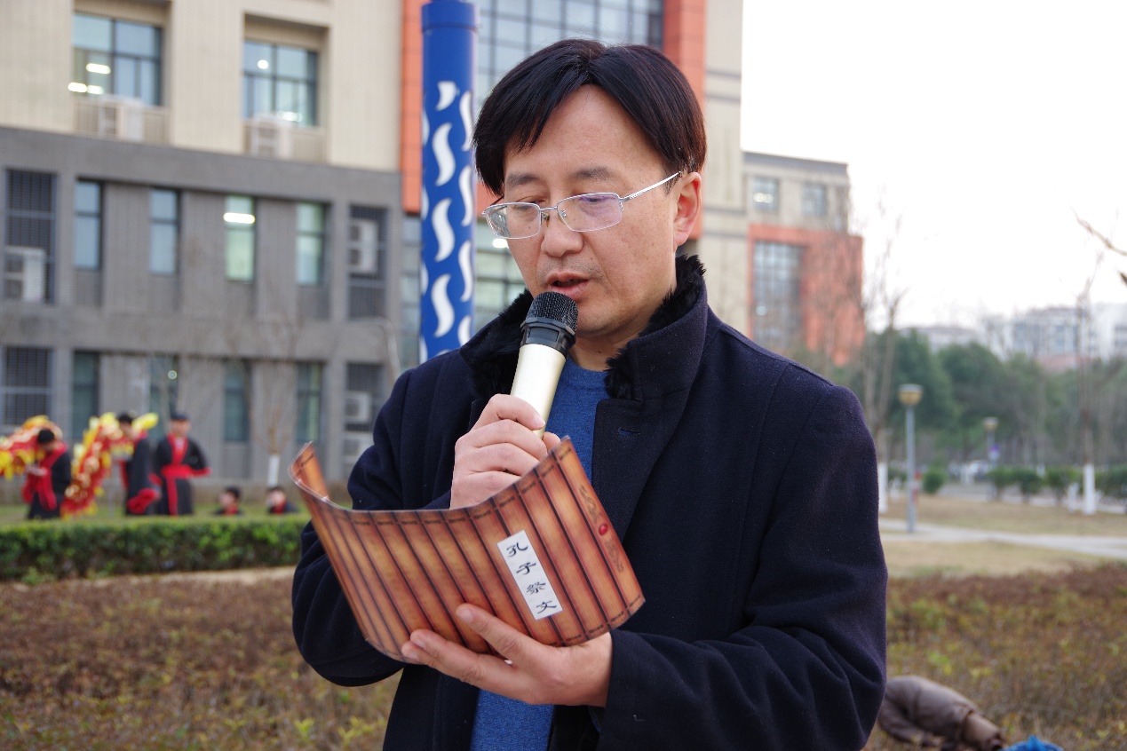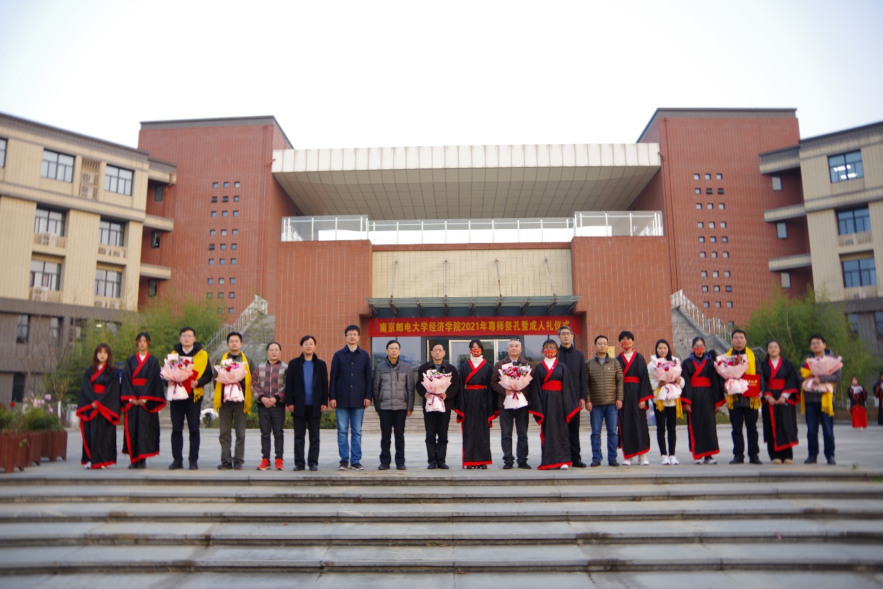 2021年12月22日下午,经济学院在计算机学科报告厅广场举办2021年尊师祭孔成人礼仪式。校关工委副主任、经济学院关工委副主任储成祥,校关工委委员蒋华园,学院党委书记黄宝凤,院党委副书记兼副院长董军,副院长景杰,副院长王子敏,副院长杨小军,学院2021级新生班主任蔡东青、杜运伟、张雅淋、傅步奔、张润驰老师出席大会。活动由2021级学生杨光、叶芊甸同学主持。