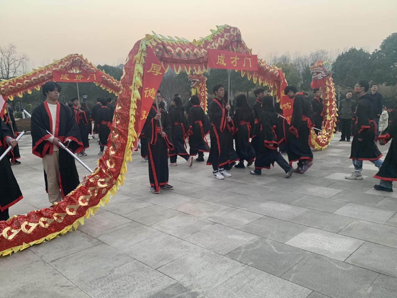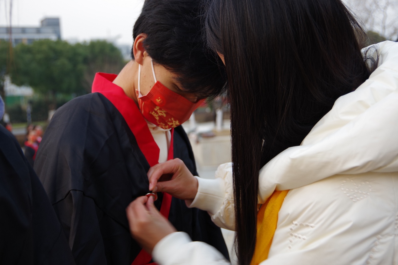 成人仪式中,学院领导、老师为新生代表佩戴院徽。全体新生整队肃立,跟随主持人集体宣誓,最后依次有序走过三道龙门:成人门(经世济民、信达天下),成才门(厚德弘毅、求是笃行)和成贤门(谦谦君子、家国情怀)。这意味着他们社会角色的转变与人生责任的担当,同时更蕴含着经济学院对全体新生的殷切期望。