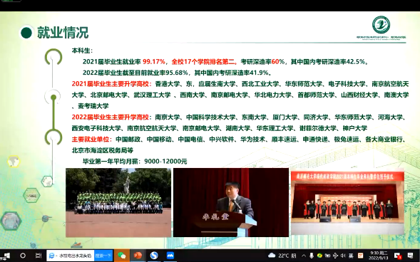 13日上午主要进行校史校情教育。通过播放学校宣传片,让学生们快速了解大学校园生活,也增加同学们对新生活的期待。接下来是学院概况介绍,以及专家学者、杰出校友等与新生的线上交流。