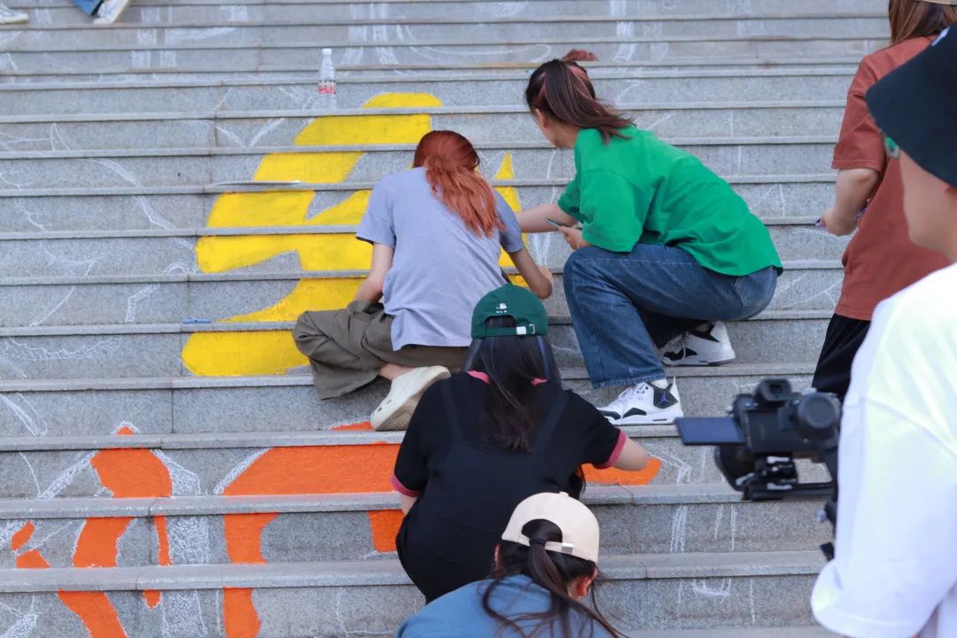 本次活动中师生共同参与,在两个场地展开活动,分别负责图书馆北侧的阶梯绘图和大学生活动中心三楼两处。