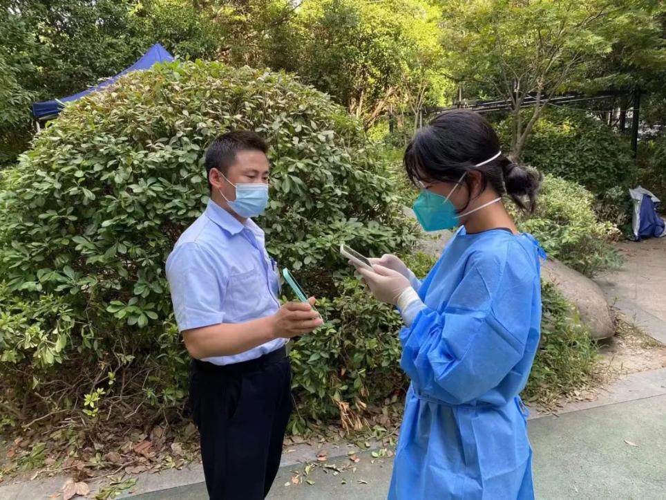 随后,成员们参与了社区核酸检测志愿服务,她们的主要工作就是为做核酸的居民扫码。由于社区老人较多,对设备的操作往往有些困难,成员们耐心听取老人的诉求并为尽力帮助老人完成核酸检测,在减轻社区工作人员负担的同时,也提高了核酸检测的效率。