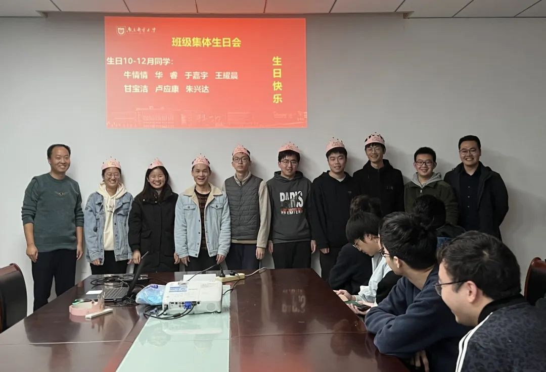 11月24日晚,电子与光学工程学院、柔性电子(未来技术)学院2019级电子科学与技术专业B190201班兼职班主任张超老师为班级举办集体生日会暨考研30天倒计时启动仪式,学生班主任王怡钦和班级全体同学参加,会议由辅导员孙树将老师主持。
