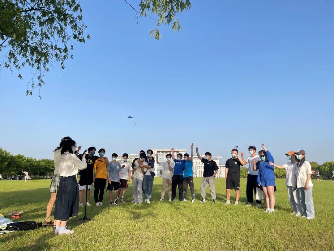 儿童散学归来早,忙趁东风放纸鸢。在草坪上,同学们拿起风筝,释放了疫情期间的学习和心理压力,也捡起了儿时那份童真童趣。这项体育活动,让大家都累得气喘吁吁,但当齐心协力放飞风筝时,所有人脸上都洋溢着快乐的笑容,同学之间的感情也被风筝线拉得更近,增强了班级凝聚力。